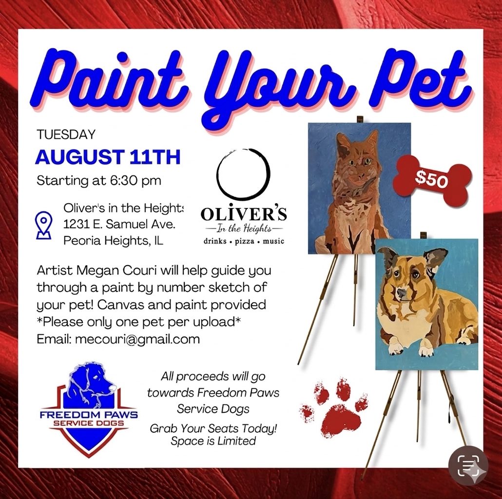 Join us on August 11th for another fun-filled evening where you’ll turn your furry friend into a masterpiece! 🖼️🐶🐱